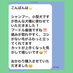 すごく毛質が変わりました甘えん坊ですごく可愛いの️どんちゃんのカットは赤ちゃんカット♀️輪郭ベアライン耳裏にラインを繋げると幼くなるよAcoco︎シャンプーのコンセプトママと僕と私は同じ匂い。安心するね。わんちゃんも飼い主様もトリマー様もみんなHappyに♫♪♫ワンちゃんは敏感肌だから安心し使える物を心を込めて作りました。わんちゃんのお肌人間のお肌も綺麗になるように作りました!わんちゃんの皮膚ケアを制する者は人間の肌を制す!!わんちゃんの毛も人間の髪の毛もツルツルに優しい材料でできているので泡は立ちにくいですが、優しく綺麗にケアができます。拝啓!我が子を大切に思う飼い主様!!販売されているシャンプーは全部安全?こんなにたくさんシャンプーの種類があると何を使っていいかわからない?ブラッシングの時間が戦いになってしまう?トリマーさんにまた毛玉って言われちゃう。トリミング前に必死になってブラッシングしていませんか?お洒落なカットをしてみたいけどお手入れが心配?痒がる。足舐めがとまらない。ずっと飲ませているお薬。大丈夫なのかな?飼い主様も一緒に使ってみて、我が子への安全を確認してみてくださいね!そしてお肌ツルツル、髪の毛ツルツルの感動を!毛玉になりづらい毛質に綺麗な毛質に使えば使うほど毛質が変わります!拝啓トリマー様!!わんちゃんが大好きでこの仕事についた。なのに、毛玉とりの悲鳴が精神的に限界。可愛そうな事をしているのでは。。。でもまめに通ってくれているのに毛玉になるお客様にはご希望のカットを提供してあげたい。毛が立たないからカットしづらい。ちょっと毛固まってくれたら最高なのに。。。皮膚炎のわんちゃんの痒みを抑えてあげたいな。今使っているシャンプー剤で手荒れ。こんなものでわんちゃんを洗っていいものだろうか。とか。18年のトリマー人生の悩みを詰め込んだシャンプーをつくりました!!わんちゃん効果!●毛玉ができづらくなりブラッシングする時引っかかりにくい●毛玉ができたとしても解けやすい●毛艶が●育毛にも●おうちシャンプーでも使える使いやすさ●皮膚と毛を乾燥にも●カットしやすい●明らかに普通のシャンプーと違う仕上がり。〔フワフワツルツルが別次元〕●菌のバランスを整えるから犬臭くなりにくい●わんちゃんのシャンプーやトリミングでのストレスを軽減 〔精神安定すると言われているラベンダーの香り〕●ハーブ使用で虫除けにもなること飼い主さまへの効果●髪の毛がツルツル●シワにも️●朝の寝癖はブラシかければ元通り●整菌して地肌も健康に育毛にもつながりる ●肌荒れやニキビにもわんちゃんも飼い主様もトリマー様も是非一度お試しください!想像を超える仕上がりを!!ご購入方法プロフィール画像に貼り付けているBASEよりご購入よろしくお願いします〒999-3511山形県西村山郡河北町谷地字砂田218の1番地09076664858LINE ID09076664858定休日水曜日︎火曜日︎日曜日隔週休み只今、ご新規様は歯磨き単品コースのみの受付とさせていただいています。カットシャンプーでご予約になりたいお客様。スタッフ育成に取り組んでいますご新規予約開始までもうしばらくお待ちください#皮膚ケアサロン#育毛サロン#毛玉になりづらい毛質改善がサロン#可愛くなれるサロン#歯をピカピカサロン#口内環境整えるサロン#特許を保持しているサロン#コンテスト入賞経験があるサロン︎スタッフアカウント︎店長@sugarcoco_ericoco はるか@sugarcoco_haruka あゆみ@sugarcoco_ayumiまこ@sugarcoco_mako#アッコッコシャンプー #犬シャンプー #dogsalon#トリマーと繋がりたい#皮膚ケア#犬の皮膚トラブル#犬の皮膚炎#犬のアレルギー#お気軽にフォローしてください#dog#Acoco︎シャンプー#Acoco+ケアミスト