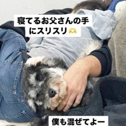 お兄ちゃんの見守り隊。シュナウザー は愛情深い。#僕のシュナウザー 地震が続きますね。みんな何事もありませんように。#地震