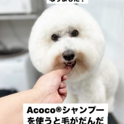 ワンちゃんのお肌は敏感!ワンちゃんのシャンプー選びに悩んでいる人必見!ノンシリコーンシャンプーAcoco®︎で解決できます!トリミングコンテストで1位を取ったドッグサロンシュガーココの笠原がお勧めするドッグシャンプーをワンちゃんの為にも是非お試しください