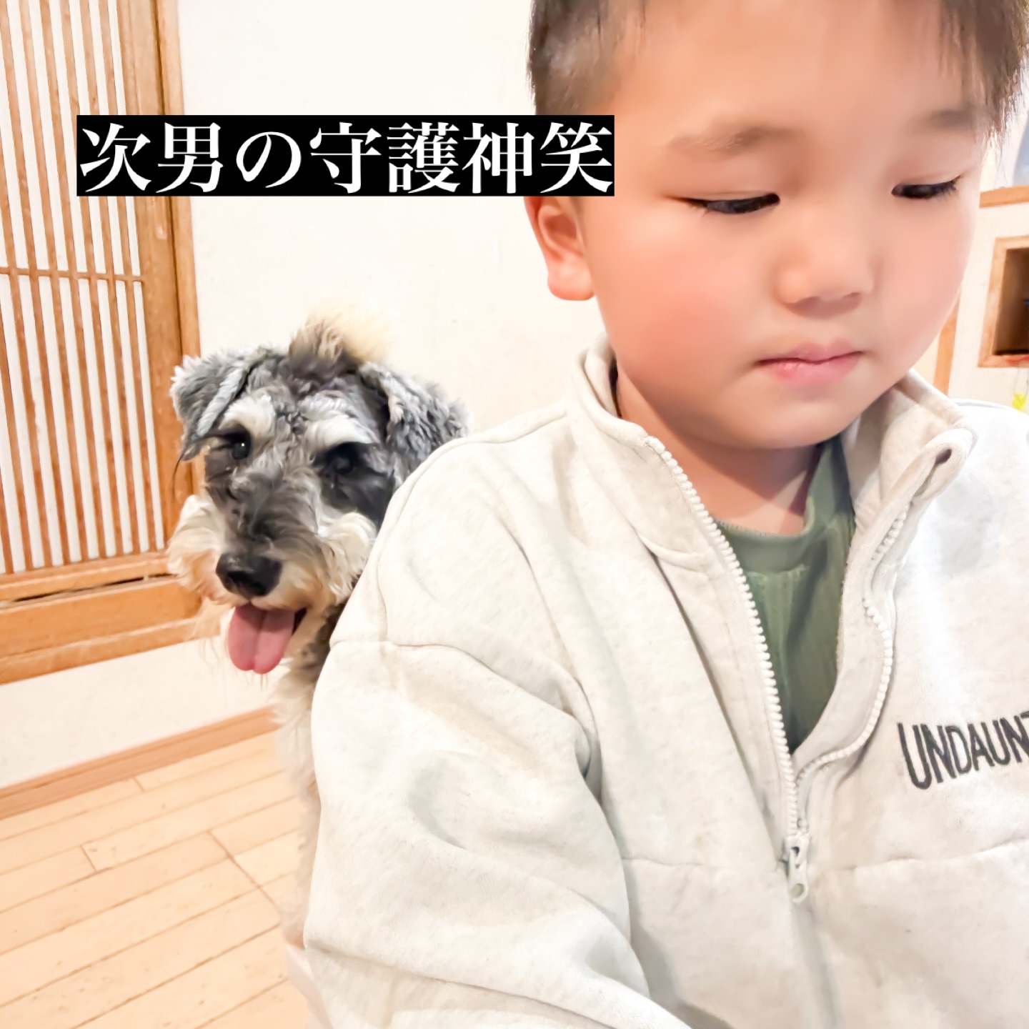 夕方、次男が怒鳴られるのを知っている。祝くん!そうです!宿題の時間です🤭怒られるのを察知してそっと守ってる様子🩷怒れなくなっちゃうな!#シュナ#家族を守る